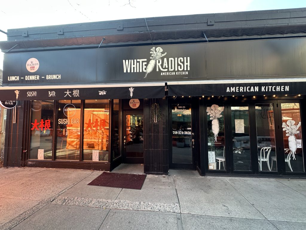 “While White Radish and its sushi sister restaurant are neighborhood gems, they are worth the trip from anywhere,” said Donna Albano. She and her guests always address the sushi chef as “Chef” and a true artist. “His creations are visibly artistic, and the flavor combinations he creates burst in your mouth. The real fun part of the restaurants is that you can order from the American and Japanese menus on either side, which is great when you’re out with a group of differing tastes. I urge everyone to stop by when they can, since we need to keep these fantastic restaurants as part of our Forest Hills scene.”