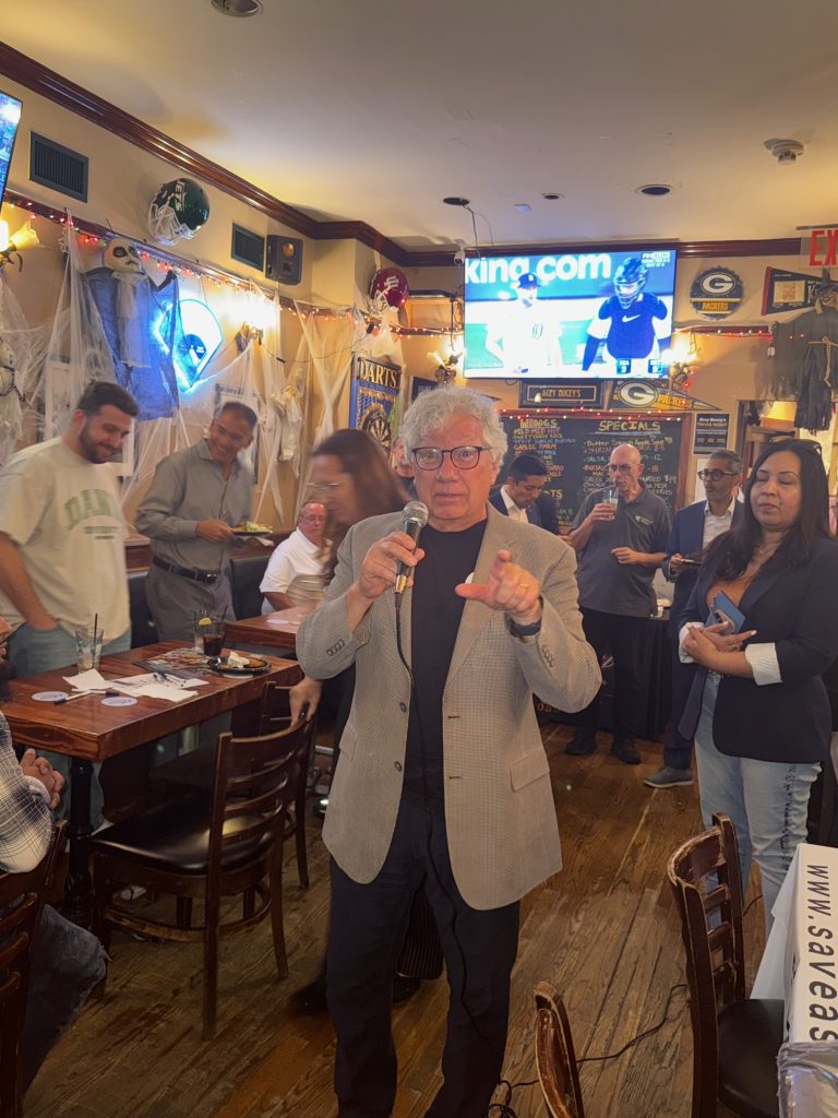 Daniel Olson, the Kiwanis Club treasurer, opened the evening by welcoming attendees. “This is an event of the Forest Hills Kiwanis. We’ve been around for 10 plus years, and it really is more of a chance to meet maybe your neighbors, maybe some business partners, maybe make some new friends,” he said. Attendees were encouraged to mingle, introduce themselves, and participate in a raffle featuring memberships to the Queens Chamber of Commerce, local restaurants, and other community prizes.