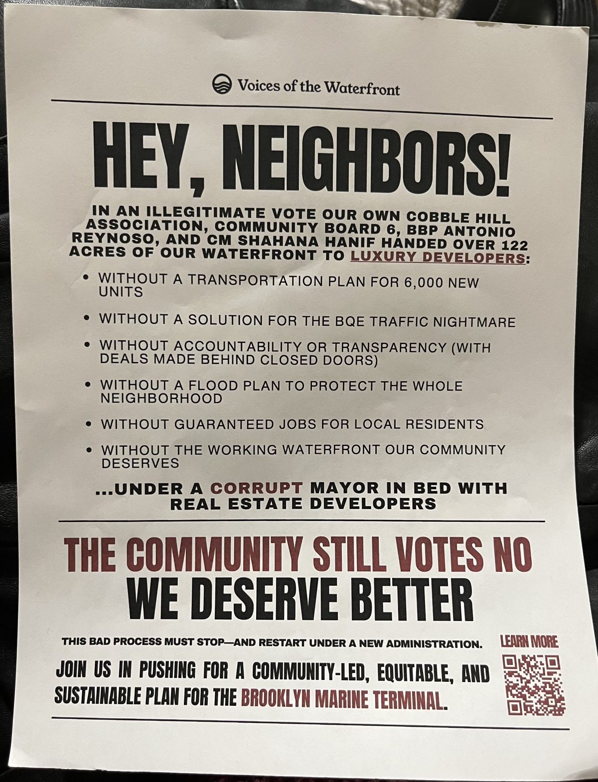 At the start of her testimony, Blondel drew attention to the room’s occupants, emphasizing that many of the speakers were from the wealthier Cobble Hill and Carroll Gardens neighborhoods and none were from the Red Hook Houses.