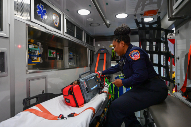 Each shift begins with a check of the ambulance — “the bus,” as they call it — making sure every piece of gear is ready for the next emergency. Then the calls come. “It’s everything you can think of — cardiac arrests, respiratory distress, even toothaches,” Esho said. “If somebody calls 911, we go.” Some days it’s minor. Other days, it’s life and death. He still remembers one of his first cardiac arrests — a 65-year-old woman who overdosed. “It’s nothing like what you see in training,” he said. “You can’t prepare for the smell, the sight, or the family right there watching.”
