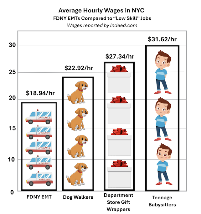 “We are world-class emergency response medical professionals and the FDNY is the busiest emergency medical response agency in the world,” said Local 2507 Union President Oren Barzilay. “Yet our front-line medical first responders are paid less per hour than most New Yorkers pay to babysitters or dog walkers.”