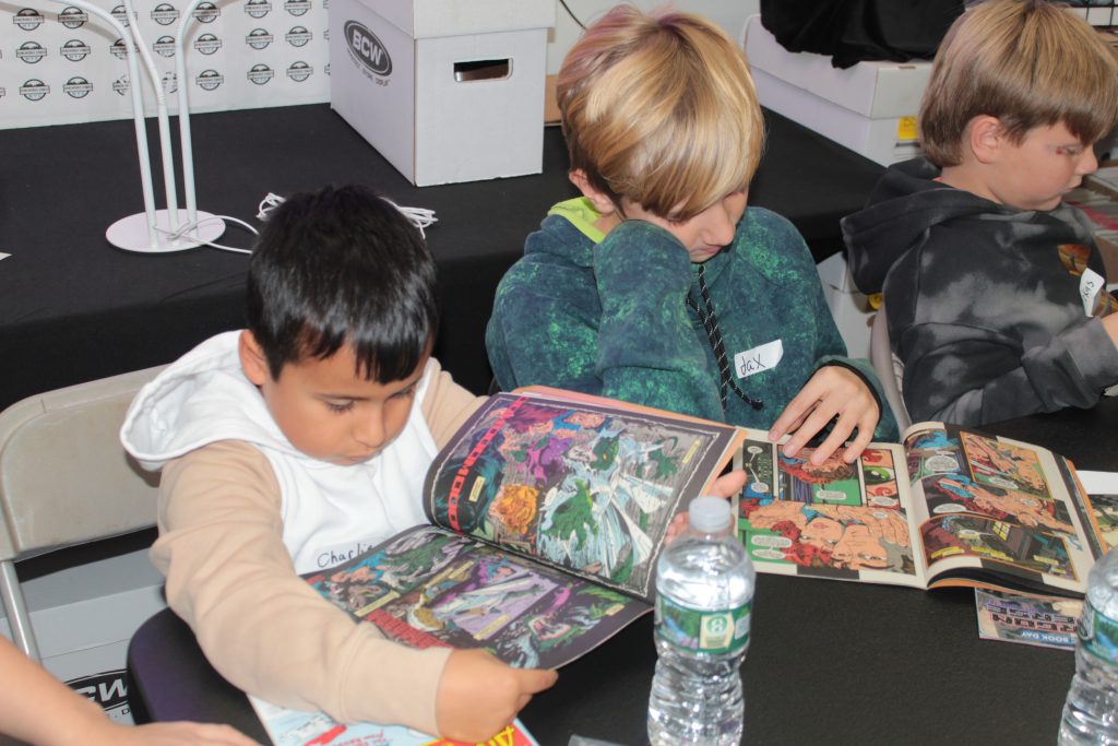 Organizers Michael Raphael and Pogozelski guided discussions about the evolution of comics, from early stories that included mail-in offers and advertisements to modern editions with slick graphics and storytelling. The teens debated their favorites: some preferred the detailed, action-filled pages of Superman, while others gravitated toward Spider-Man’s clean layouts and exciting fight sequences.
