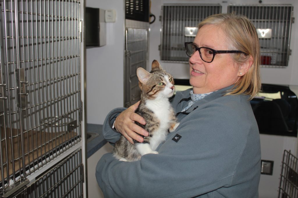 “Fosters are everything,” she said. “All of our cats are kept in home environments until they’re adopted. They’re only in cages when they’re at an event like this.” One current intake is temporarily boarding at the group’s veterinary clinic while a foster home is arranged, but Fessmann noted that the goal is always to get cats into stable home settings as quickly as possible.