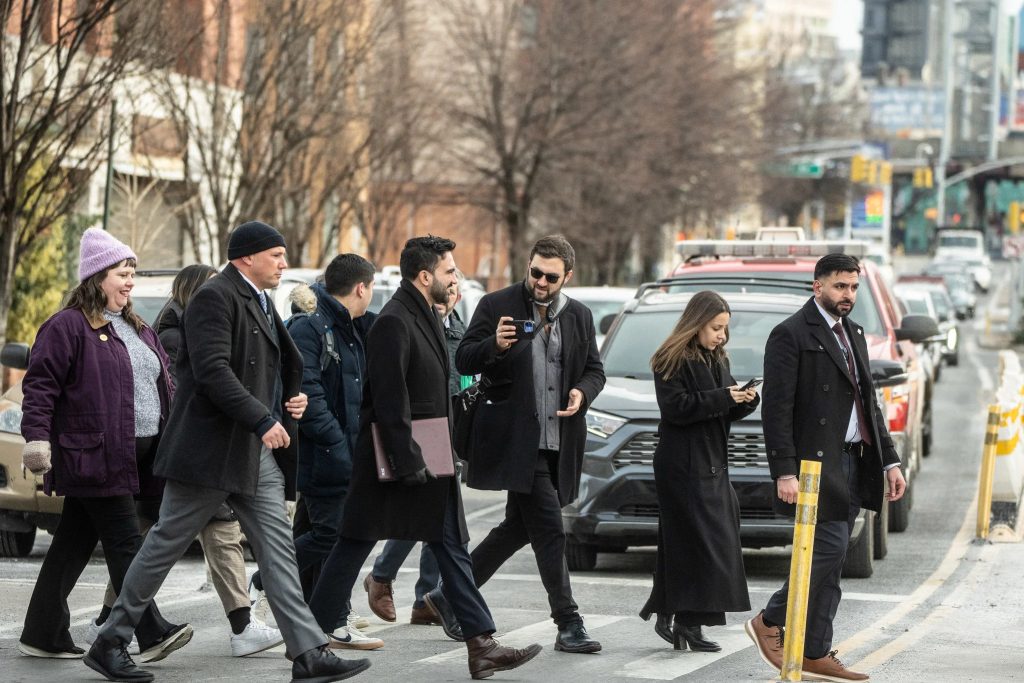 As the crowd amassed at the corner of Broadway and Liberty Street, some spectators, many wrapped in scarves and keffiyehs or wearing Democratic Socialists of America beanies, gave into the cold and turned back before coming within sight of the screens broadcasting the speakers a few blocks north at City Hall.