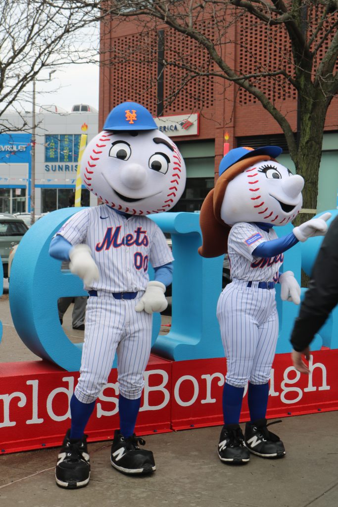 A birthday candle was attached to each letter of the bright blue “Queens, the World’s Borough” sign located in MacDonald Park. The year’s first sixty-degree day brought out hundreds of Queens residents, as they crowded into all nooks and crannies of the park. Dozens lined up to take photos with Mr. and Mrs. Met, joined in on dance performances, and bought Girl Scout cookies by the handful. Since it was International Women’s Day, cheers even went out to Mrs. Met, who blew kisses to the crowd.