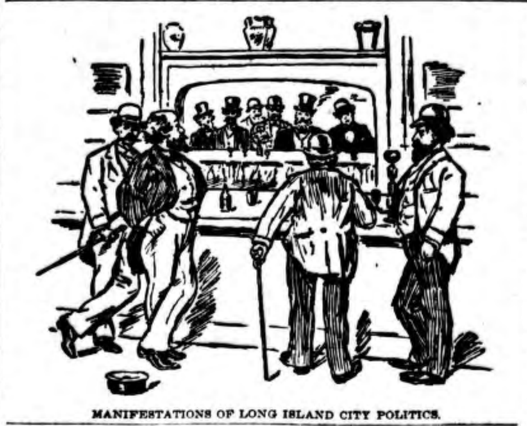 The bar was for decades ground-zero of Queens politics. In 1888, The New York Press reported, “Long Island City exists on politics. Its politics plunge its inhabitants into a vortex of cursing, swearing and disorderly conduct.” It reported in a column on the hotel, “In Times of political excitement, the representatives of every political faction and party gather there.”