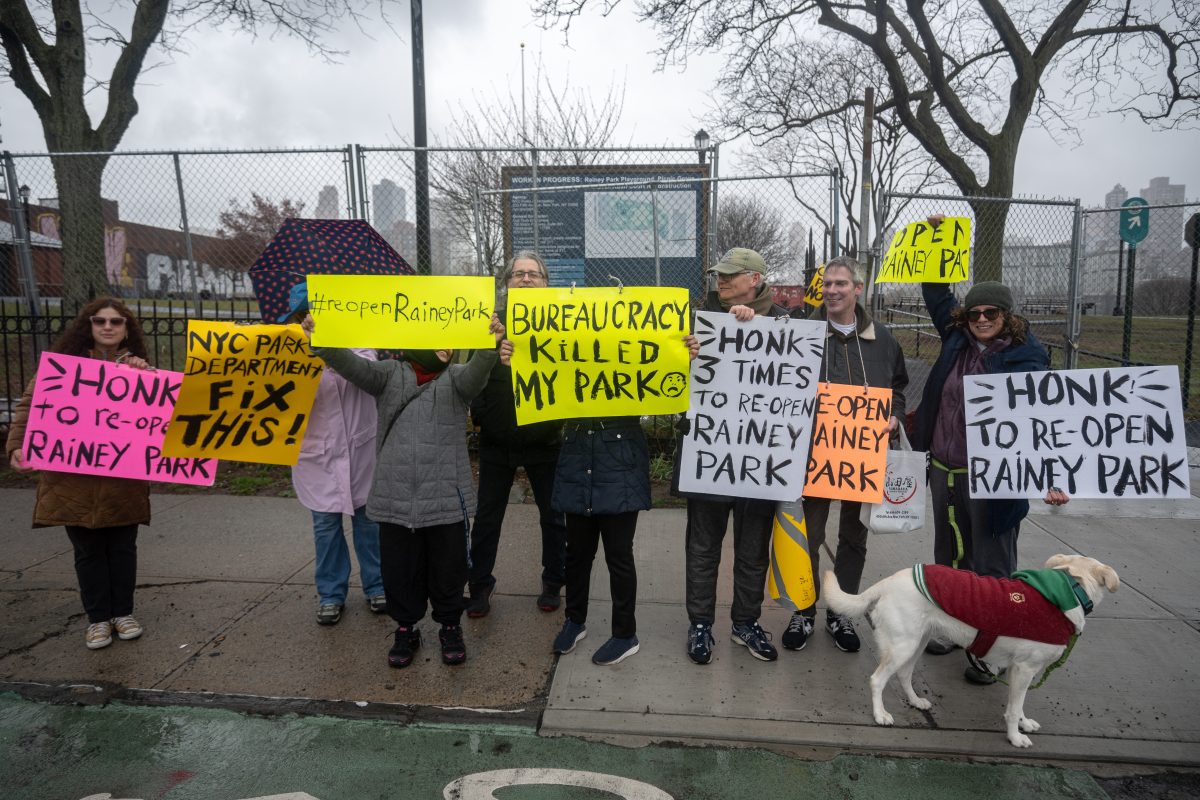 With over a dozen people showing up in the cold and rain, Astoria resident’s dedication to their green spaces is evident. As a plethora of cars beeped in support, many of the protesters cheered and chanted, all with a common goal to bring back their beloved park.