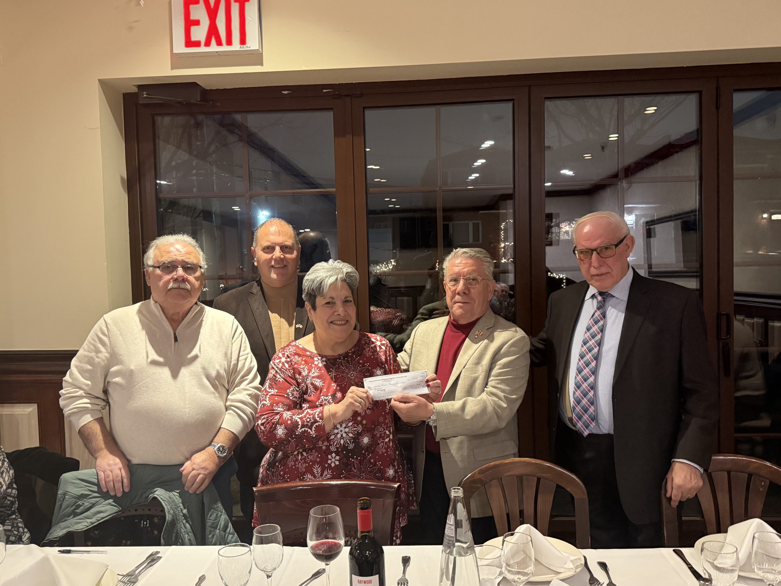 Nancy Baer from Glendale’s Sacred Heart Food Pantry & parish ministries. received donations totaling $3,000 on Tuesday night, December 2nd. Nancy thanked the group and posed for a picture